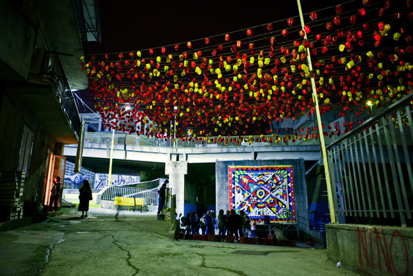 The project was carried out with the complicity and the help of the residents and the administration. The idea was to make use of a familiar element for the town and convert it into something else creating in this way a festive environment. They chose peppers, a vegetable grown in the area and which has been part of the local culture for hundreds of years.