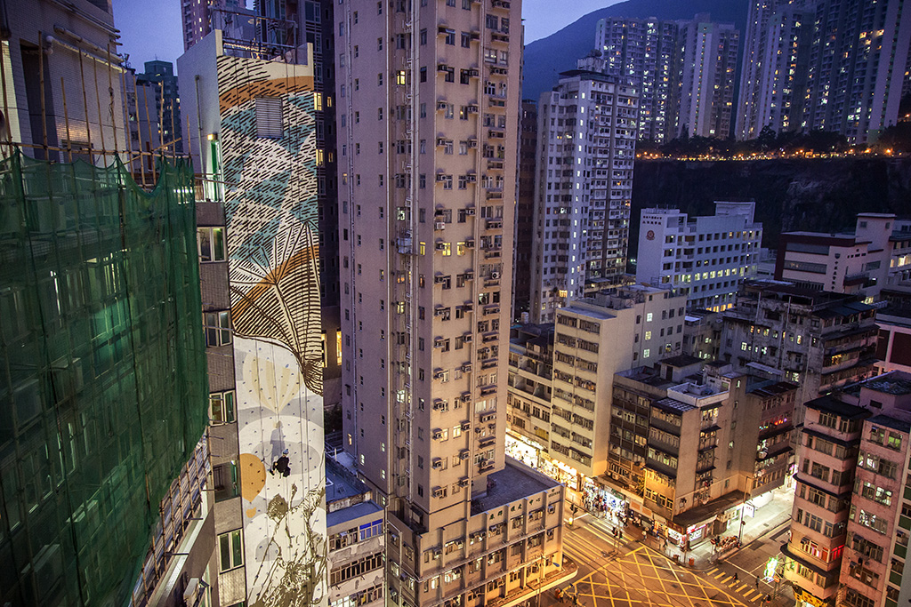 Cyrcle. Is now in Hong Kong for the opening of their new show at the Above Second Gallery in Hong Kong, painting for the occasion this huge mural entitled Rise Above on the side of the Youth Outreach Center in Sai Wan Ho, a wall previously painted by Shida and TwoOne: