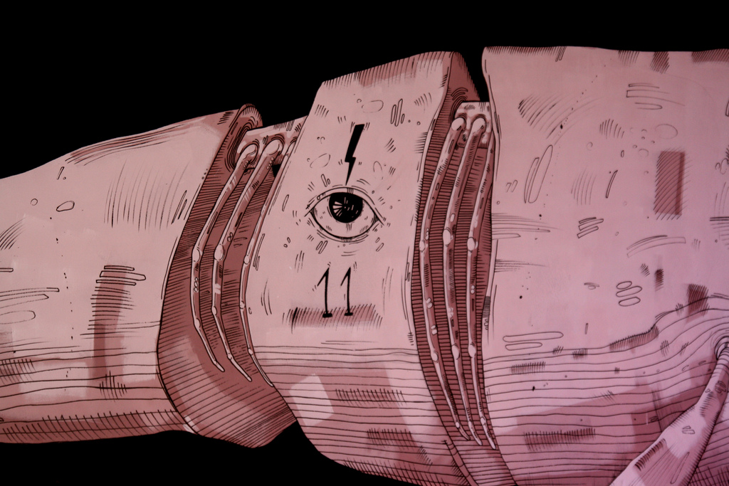 Maybe a bit late with this one, but these new pics by Henrik Haven are way better than the last ones i saw. The new mural features the work of Melbourne-based street artist Rone who spent a few days in Berlin painting three portraits of fashion model Teresa Oman as a part of Project M with Strychnin Gallery. According to Rone, the largest he has ever painted before, not to mention that the windows were a huge challenge.