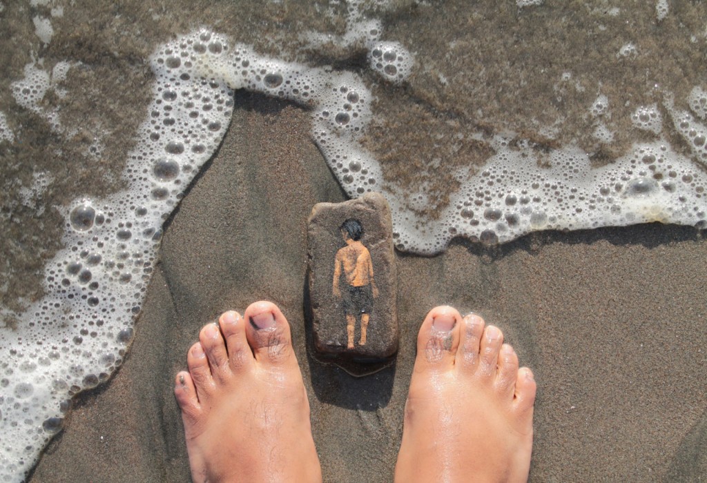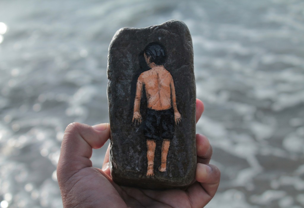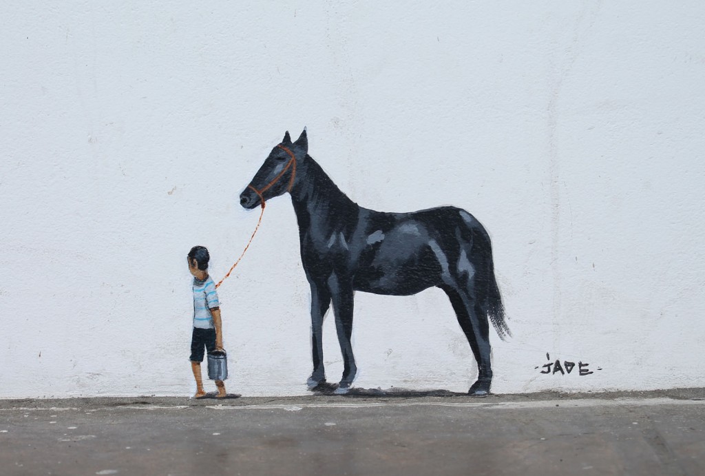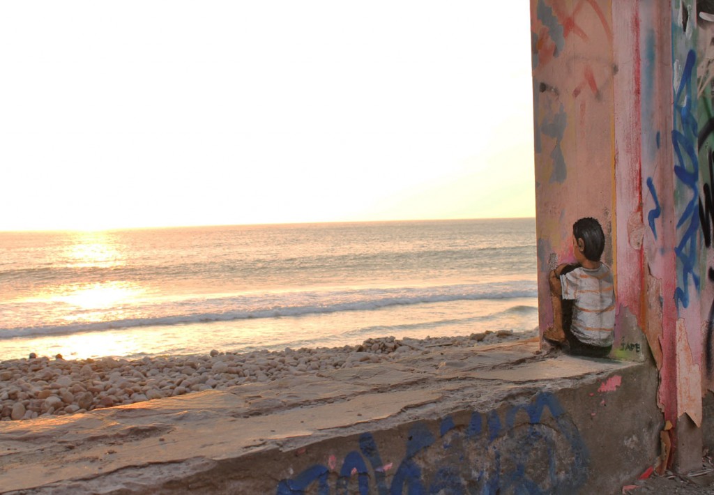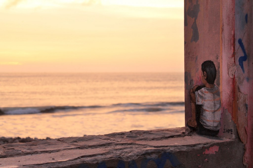 Painted using acrylic the small pieces or miniwalls as JADE chooses to call them, are evocative representations of everyday life. Like the picture above showing the image of a boy watching the sunset at the beach.