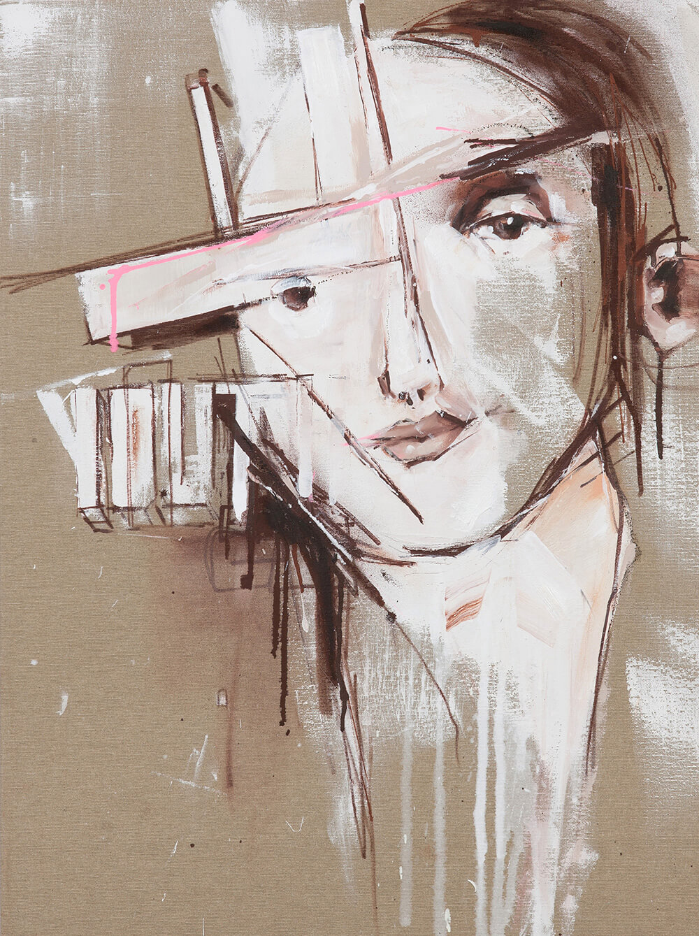 Unlike Tobias Kroeger’s last exhibition „Face-Off“, characterised by a dark and consistent cubist inspired approach to painting, „FOOLS“ feels like a breeze of fresh air that intends to introduce the visitors into a new world of light colours and a line-work clearly inspired in his graffiti background, resulting in an interesting mix that combines his classical art training and experience as a street art artist and graphic designer.