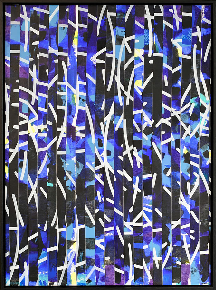In the new work, not only shapes are deconstructed, so is colour. Where once it was used to give shape ti his geometrical compositions, colours become now part of the deep and fragmented background. A beautiful and experimental body of work that clearly reflects the versatility of the artist.