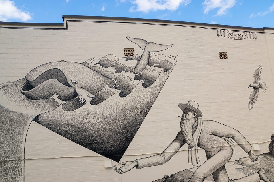 Waone choose to discuss the whale issue, because during winter, female whales migrate to North Florida and Georgia to give birth in the coastal waters of Jacksonville, where this mural is located, becoming a symbol of hope for a brighter future.