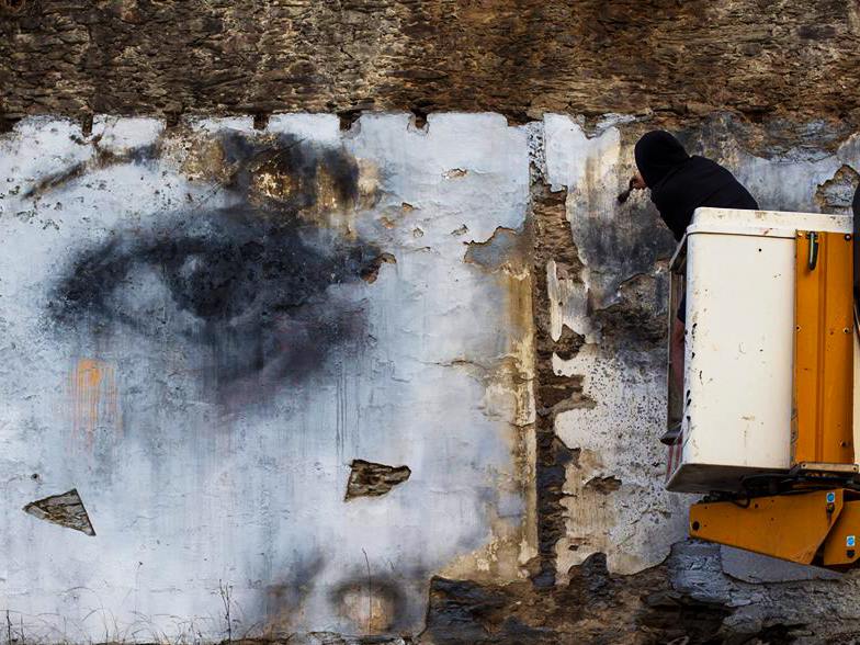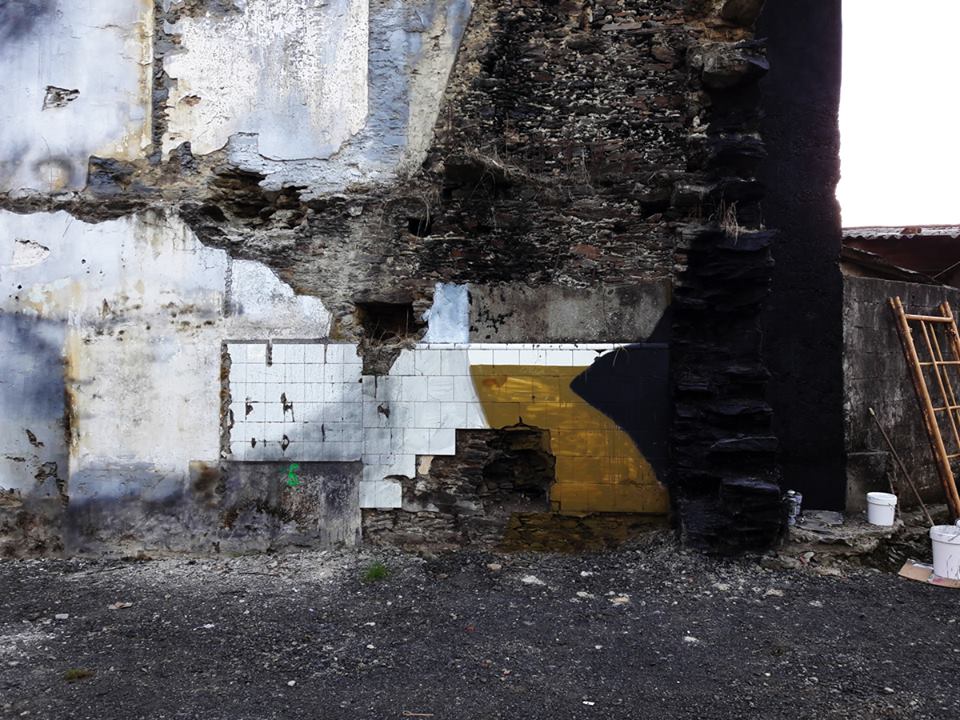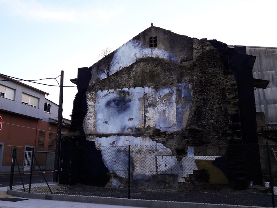 Titled ‘Memoria’ (Memory) the mural is part of a series of works inspired by the concept of “Oblivion” in an attempt to give new life to spaces that today are believed to be lost. The mural is inspired by its decaying surroundings and based on an old photograph found in Ordes. The image of a woman’s face that in the hands of Bosoletti establishes an intimate dialogue with the surrounding space and the viewer, highlighting the idea of the passing of time and oblivion. In Bosoletti’s mural each colour, texture and material used is part of one or many stories. A lovely and poetic mural that speaks about nostalgia.